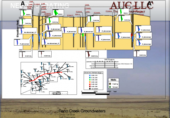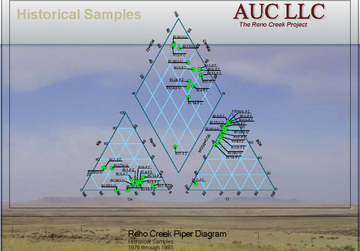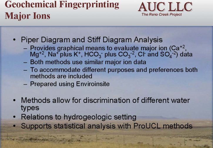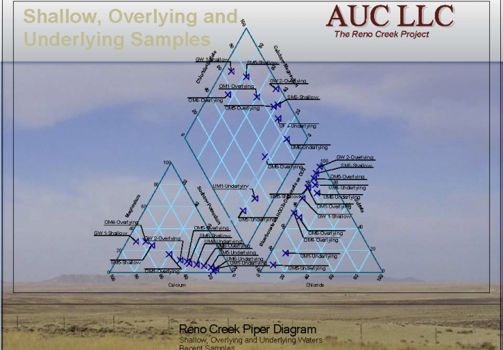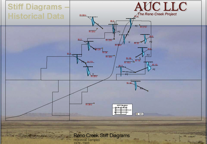 AUC LLC’s application for a new In Situ Recovery Site before the U.S. Nuclear Regulatory Commission required a comprehensive understanding of site hydrogeology. AUC LLC utilized EnviroInsite’s sophisticated contouring tools to map water levels and then mapped the geochemical variability by application of EnviroInsite’s stiff and piper diagrams.